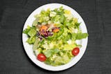 Tomatoes, cucumbers, onions, olives, and feta cheese in an olive oil dressing.